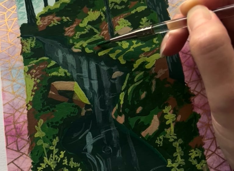 whimsical and cozy gouache original paintings